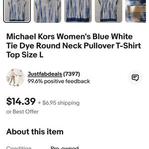 Michael Kors Blue and White Tie Dye Round Neck Short Sleeve Shirt Size S