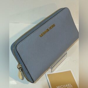 Authentic Michael Kors Blue Zip Around Wallet long wallet clutch