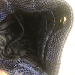 Michael Kors Blue Python Embossed Studded Leather Strap Gold Crossbody Purse Bag