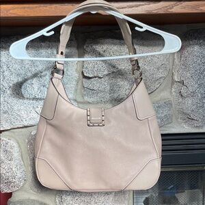 Chic Michael Kors shoulder bag in blush leather. Stylish and versatile for any outfit.
