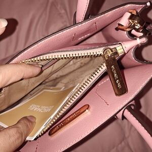 beautiful Michael Kors satchel in blush pink. Features elegant gold-tone hardware. Perfect for any occasion. brand new with tags, two compartments separated by zipper pouch. please ask questions and dimensions to follow. thank you for viewing ☺️