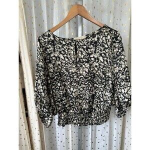 Michael Kors Boat Keyhole Neckline Balloon Sleeves Smocked Waist Hem Blouse XS