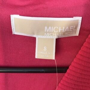 This beautiful Michael Kors knee-length sheath dress is perfect for any occasion. The pink color and V-neckline add a touch of femininity, while the cap sleeves and knit material make it comfortable and stylish. The dress is brand new with tags, and is a size small. It's perfect for winter, summer, fall, or spring, and is great for travel, holy communion, parties, cocktails, or business. The dress is solid in pattern and has a knit fabric type. It's a regular size and is part of the women's clothing department. This dress is a must-have for any fashion-forward woman!