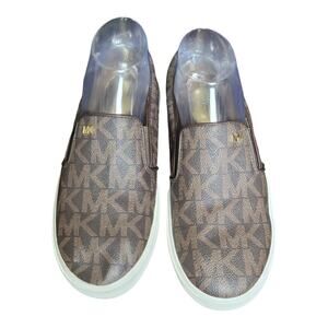 Michael Kors Boerum Double Gore MK Signature PVC Brown Slip On Sneakers US 7.5M