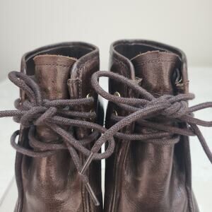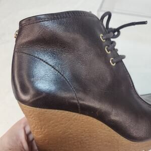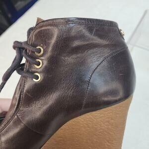 Michael Kors Boots 6.5 Wedges Ankle Brown Leather Lace Up Dark Academia Moc Toe