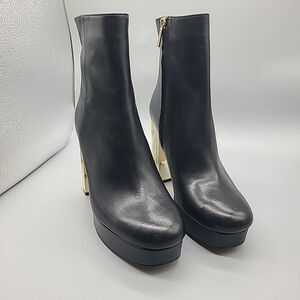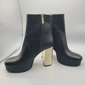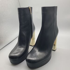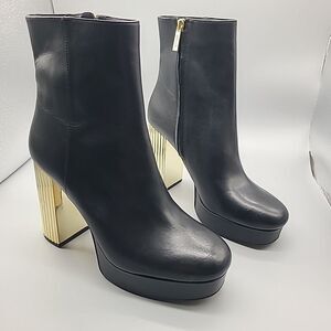Michael Kors Boots Sz 9 Porter Platform Gold Heel 4.5' Womens Black Leather New