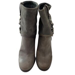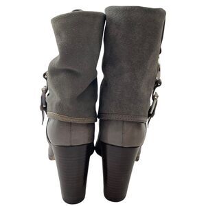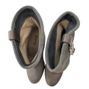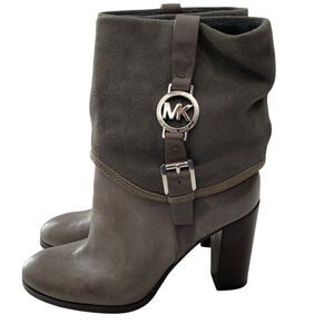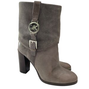 Michael Kors Boots Womens 7M Gray Leather Suede Pull On Mid Calf Heel Fulton