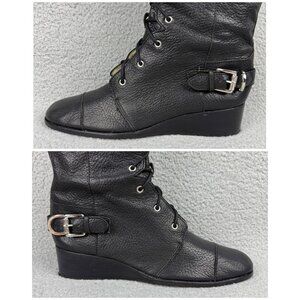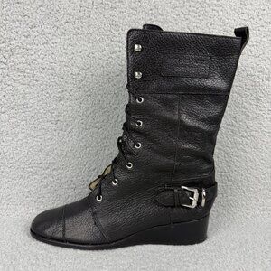 Michael Kors Boots Womens 9.5 Shoes Black Woodley Wedge Combat Moto Biker Calf