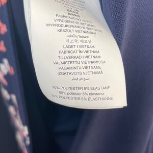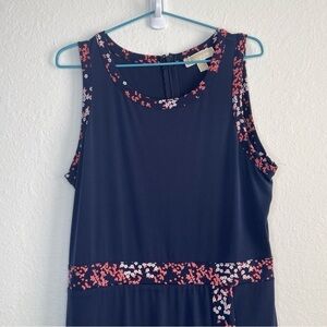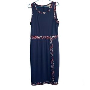 Michael Kors Border Print Faux Wrap Dress Navy Blue and Pink Floral Jersey Knit