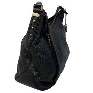 Michael Kors Bowery Black Pebbled Leather Hobo Bag Front Vertical Zip Pockets