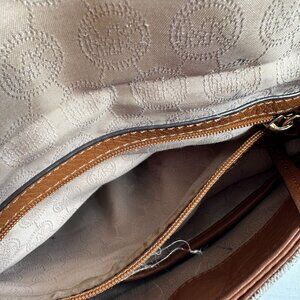 Michael Kors Bradford Crossbody MK Logo Flap Bag Beige/Brown Adjustable Strap
