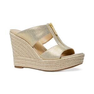 Michael Kors Bradley Espadrille Platform Wedge Sandals - 7.5m Pale Gold