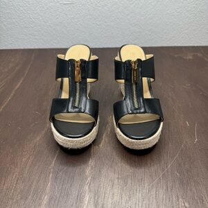 Michael Kors Bradley Leather Wedge Black Sandal EUC Size 7