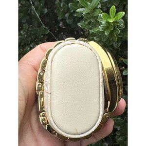 -white dial set in a sleek gold-tone case. The white, with logo finish dial gives it a stylish look. The stainless steel band is finished with a fold over clasp. It's a great casual accessory that's versatile enough to wear every day or for an evening occasion!