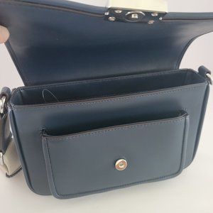 Michael Kors Bradshaw Medium Pocket Messenger Crossbody Handbag Navy Leather