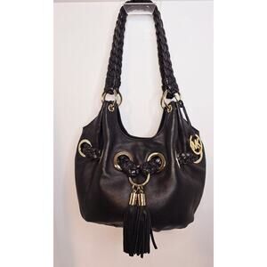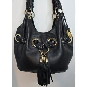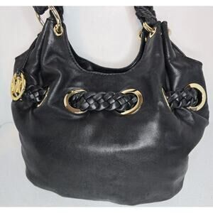 Michael Kors Braided Astor Grommet Tote Large Shoulder Bag Black Leather