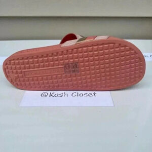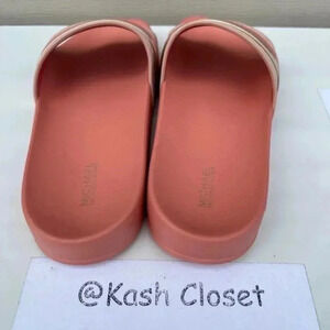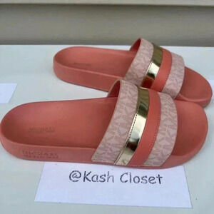 Michael Kors Brandy Metallic Striped Logo Slide Sandal- Sherbert