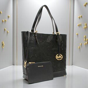Michael Kors tote | black perforated tote | MK Bridget tote | Michael Kors shoulder bag | designer leather tote | tote with pouch | large black MK bag | perforated leather MK bag | luxury everyday tote | Bridget 30S4GGET3L | MK tote purse | classic MK tote | Michael Kors tote with detachable pouch | Bridget perforated tote | MK leather shopper | Michael Kors designer handbag | MK work tote | structured leather tote | elegant black MK bag | oversized designer tote | shopper bag leather | MK carryall purse | iconic Michael Kors tote | perforated leather tote