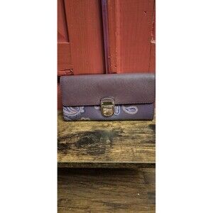 Michael Kors Bridgette Saffiano Leather Wallet Paisley Push Lock Plum Purple
