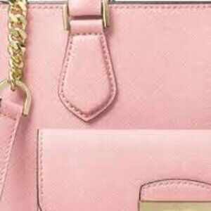 In very good condition Mini tote bag from MICHAEL MICHAEL KORS. Crafted from leather, the ‘Bridgette’ tote comprises a zip top fasten, opening to reveal an ‘MK’ lined compartment offering two internal slip pockets and an embossed leather tab. Dual rolled grab handles and a detachable and adjustable, leather and gold-tone curb chain shoulder strap offer versatile carrying options. The tote is complete with a removable 'MK' logo charm and an exterior fold over front pocket secured with a gold-tone, branded clasp fasten. Saffiano Leather Dimensions: H: 18cm x W: 20.5cm x D: 8.5cm. Handle Drop: 7.5cm. Adjustable Strap: 54.5-65.5cm. Model is 175cm/5'9".