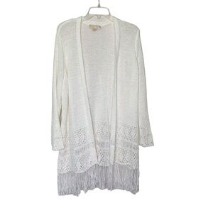 Michael Kors Bright White Crochet Fringe Open Front Cardigan (Size L)