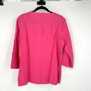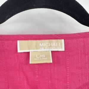 Michael Kors Bright Pink Cotton Embellished Beaded Tunic Blouse V Neck Large