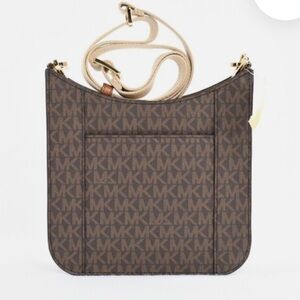 Michael Kors, Briley small messenger, Crossbody bag in brown with tan strap, new