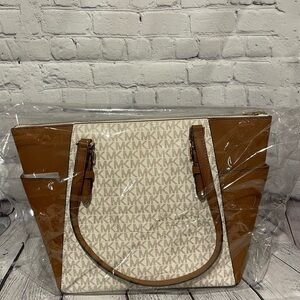 Michael Kors British Tan and cream MK logo shoulder bag New!