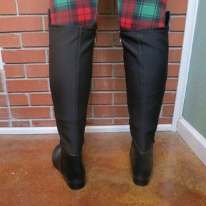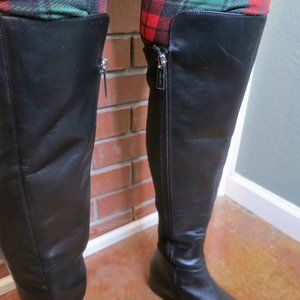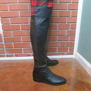 New without box. Michael Kors Bromley knee-high boots are size 8M but run a bit narrow in the foot. Leather and textile (stretchy part) uppers. Some light scuffs on boots from being unboxed -- these could likely be polished out -- see photos.
