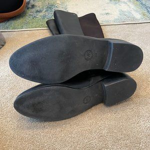 @1yummy1 The markings do not indicate wide calf. The back portion is elastic. From my quick measurement they seem to be about 14.5-15” without being stretched.