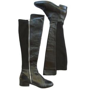 Knee high leather fronts, Stretch fabric in back.