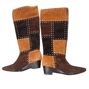 Michael Kors Bromley Knee High Suede Patchwork Studded Leather Boots, Size 9