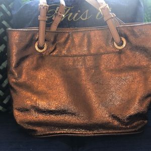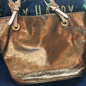 Michael Kors Bronze Crackle LeaTher Tote. Good used condition. Super clean inside and leather straps perfect! Minor wear near some of the crackle around Seam but not noticeable unless close up and pointing it out see pic 5 for the small section.