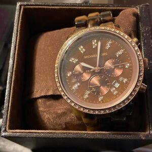 Michael Kors Bronze Tortoise Crystal and Gold Watch