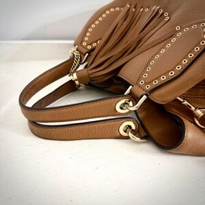 Michael Kors Brooklyn Leather Tassel Grommet Satchel Tote Bag Purse in Acorn