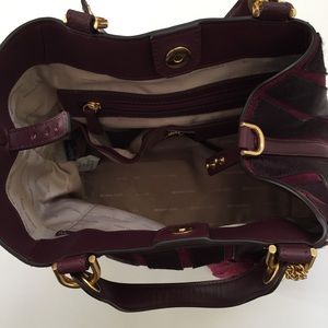 Michael Kors Brooklyn Medium Applique Suede Plum Leather Shoulder Bag.
