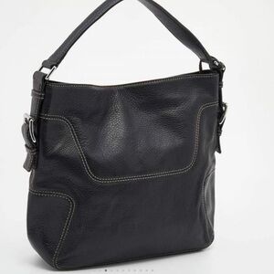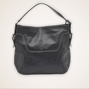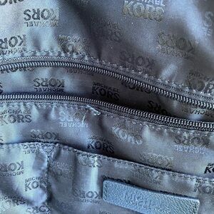 Michael Kors Brookville leather bag. Black genuine soft leather. Magnetic snap closure. Silvertone hardware. Buckle details on sides with logo embellishment Interior logo silky lining. One Interior zipper compartment and four slip pockets Dimensions are approx: Width 13", Height 12 ", Depth 4.5", Strap Drop 6". Excellent Preowned Condition. No signs of wear. Gorgeous bag.