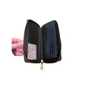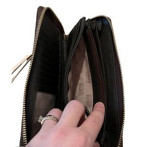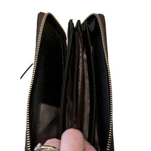 Michael Kors Brown Black Leather MK Print Full Zip Wallet Wristlet Card Holder