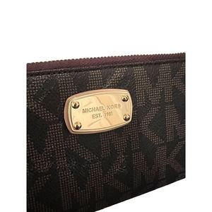 Michael Kors Brown Leather MK Print Full Zip Wallet Wristlet Card Holder Large.
