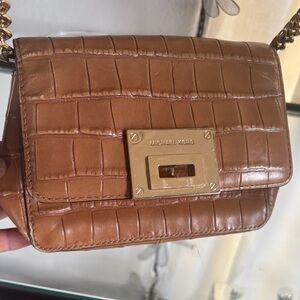 Michael Kors Brown Croc-Embossed Crossbody Bag