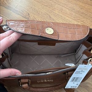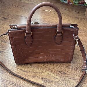 Brand new, tags on, satchel embossed leather. Chestnut color.