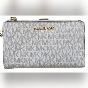 Michael Kors Brown Double Zip Clutch Wristlet with Gold-Tone Hardware, Like New