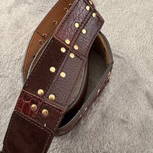 Michael Kors Brown Gold Leather Patchwork Studded Thick Belt Women's MEDIUM