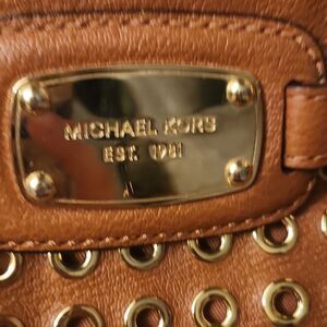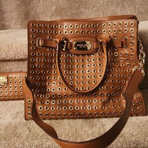 Michael Kors Brown Hamilton Tall Tote Bag w/ Rivets & Matching Ziparound Wallet