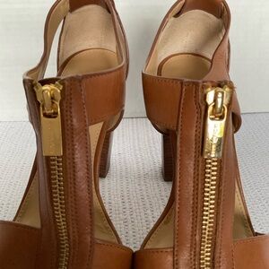 Michael Kors Brown Heeled Sandals with Gold Zipper