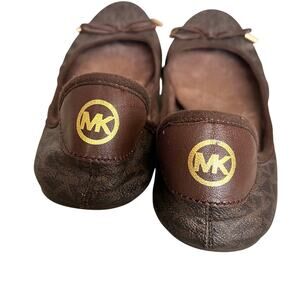 Michael Kors Brown Juliette Logo Ballet Flats Women's Size 10