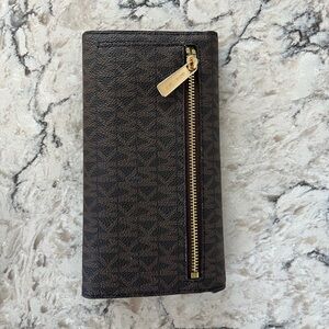 Michael Kors Brown Key & Card Holder with Logo Pattern