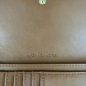 This Michael Kors key and card holder in a rich brown hue combines luxury and practicality. Featuring a signature logo pattern, it offers a stylish way to organize your essentials. Crafted with precision, it's a must-have accessory for the modern individual.