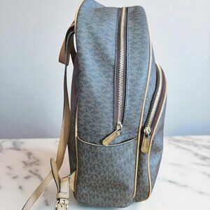 Michael Kors Brown Large Backpack with Gold & White Stripe