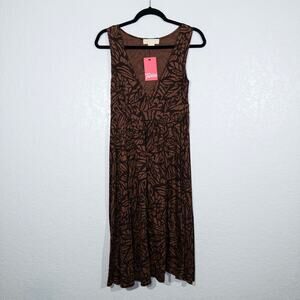 Michael Kors Brown Leaf Patterned Swing Midi Dress Size XS